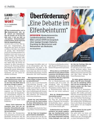 Niederösterreichs Landeshauptfrau Johanna Mikl-Leitner (ÖVP) im Gespräch über üppige Energie-Rabatte, Fracking im Weinviertel und Nehammer als Herkules. Von Georg Renner