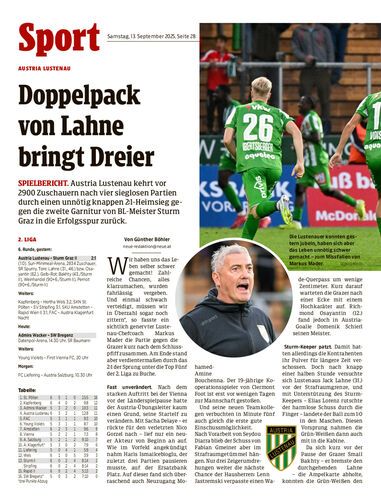 Spielbericht. Austria Lustenau kehrt vor 2900 Zuschauern nach vier sieglosen Partien durch einen unnötig knappen 2:1-Heimsieg gegen die zweite Garnitur von BL-Meister Sturm Graz in die Erfolgsspur zurück.