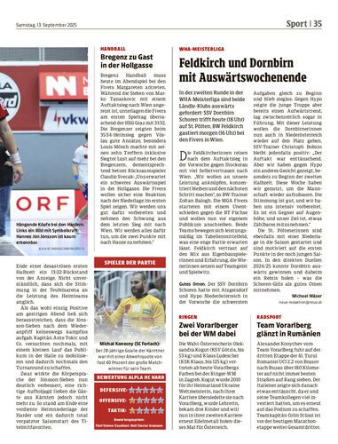 In der zweiten Runde in der WHA-Meisterliga sind beide Ländle-Klubs auswärts gefordert: SSV Dornbirn Schoren trifft heute (18 Uhr) auf St. Pölten, BW Feldkirch gastiert morgen (16 Uhr) bei den Fivers in Wien.