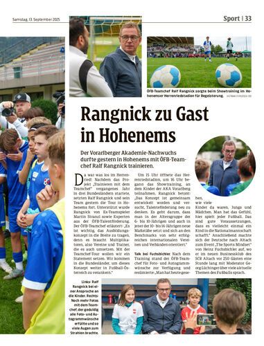Der Vorarlberger Akademie-Nachwuchs durfte gestern in Hohenems mit ÖFB-Teamchef Ralf Rangnick trainieren.