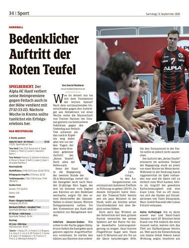 Spielbericht. Der Alpla HC Hard verliert seine Heimpremiere gegen Ferlach auch in der Höhe verdient mit 27:32 (13:22). Nächste Woche in Krems sollte tunlichst ein Erfolgserlebnis her.