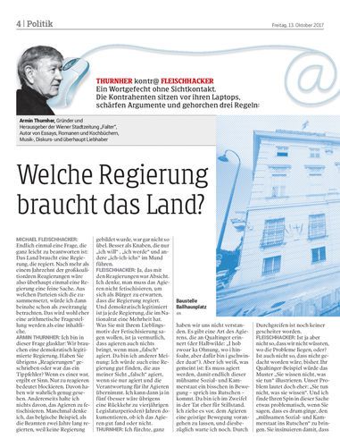 THURNHER kontr@ FLEISCHHACKER Ein Wortgefecht ohne Sichtkontakt. Die Kontrahenten sitzen vor ihren Laptops, schärfen Argumente und gehorchen drei Regeln:
