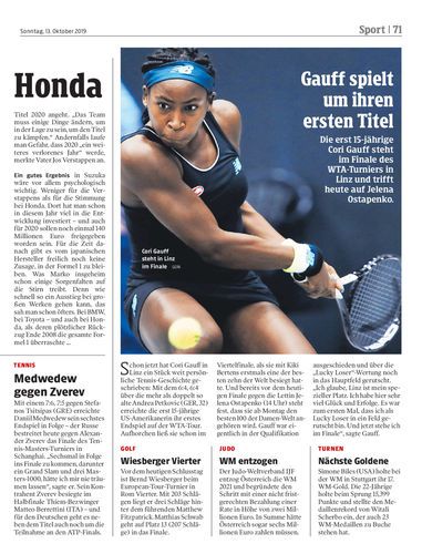 Die erst 15-jährige Cori Gauff steht im Finale des WTA-Turniers in Linz und trifft heute auf Jelena Ostapenko.