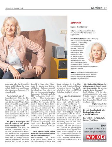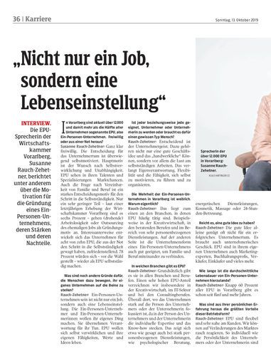 Interview. Die EPU-Sprecherin der Wirtschaftskammer Vorarlberg, Susanne Rauch-Zehetner, berichtet unter anderem über die Motivation für die Gründung eines Ein-Personen-Unternehmens, deren Stärken und deren Nachteile.