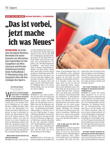 Interview. Im Frühjahr beendete Mathias Berthold (54) seine Karriere als Skitrainer. Seit September ist der Gargellner als Mentalcoach und Persönlichkeitsentwickler beim Fußballklub 1. FC Nürnberg tätig. Ein Gespräch über die Psychologie des Sports.
