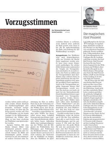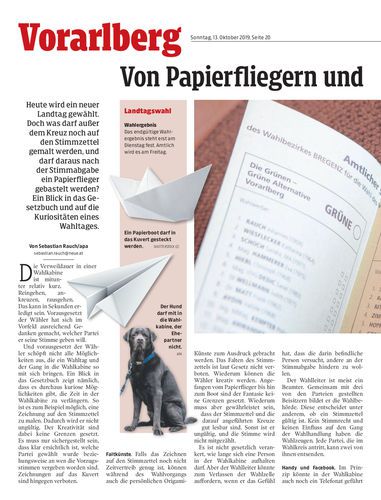 Landtagswahl. Heute wählen die Vorarlbergerinnen und Vorarlberger einen neuen Landtag. In der Wahlkabine kann so mancher Unfug getrieben werden. Doch was ist erlaubt und was gesetzlich verboten? Seiten 20/21 Klaus Hartinger