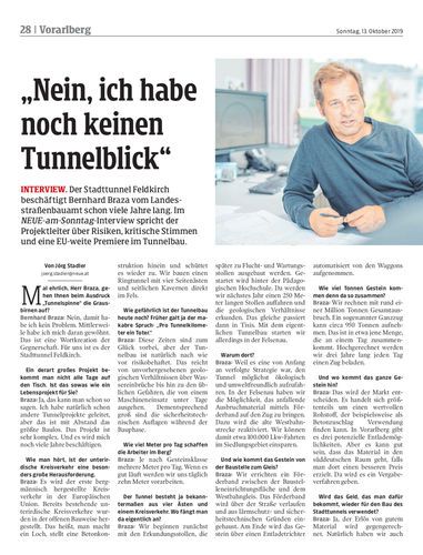 Interview. Der Stadttunnel Feldkirch beschäftigt Bernhard Braza vom Landesstraßenbauamt schon viele Jahre lang. Im NEUE-am-Sonntag-Interview spricht der Projektleiter über Risiken, kritische Stimmen und eine EU-weite Premiere im Tunnelbau.