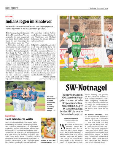 Die Dornbirn Indians sind in Wien mit zwei Siegen gegen die Vienna Metrostars in das Finale der BLA gestartet.