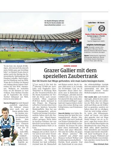 2002 gewann der SK Sturm beim Debüt von Jürgen Säumel gegen Lazio Rom 1:0. Es war der erste Sieg einer Mannschaft aus Österreich in Italien. Heute treffen die Grazer abermals auf „die Adler“.