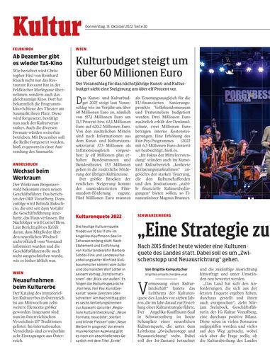 Der Voranschlag für das nächstjährige Kunst- und Kulturbudget sieht eine Steigerung um über elf Prozent vor.
