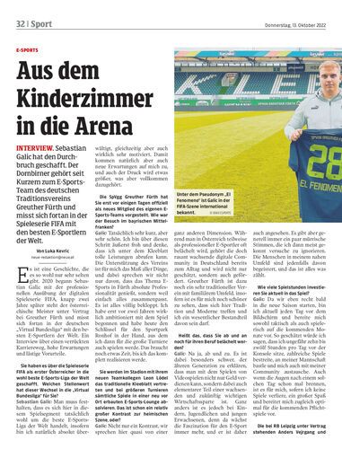 Interview. Sebastian Galic hat den Durchbruch geschafft. Der Dornbirner gehört seit Kurzem zum E-Sports-Team des deutschen Traditionsvereins Greuther Fürth und misst sich fortan in der Spieleserie FIFA mit den besten E-Sportlern der Welt.