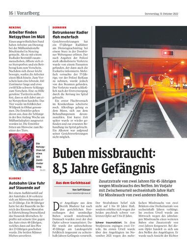 Zusatzstrafe von zwei Jahren für 45-Jährigen wegen Missbrauchs des Neffen. Im Vorjahr mit Zwischenurteil sechseinhalb Jahre Haft für Missbrauch von zwei anderen Buben.