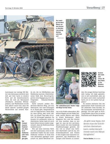 Florian Blatter aus Lustenau befindet sich auf einer Fahrradreise durch Südkorea und Japan. Der NEUE am Sonntag schilderte