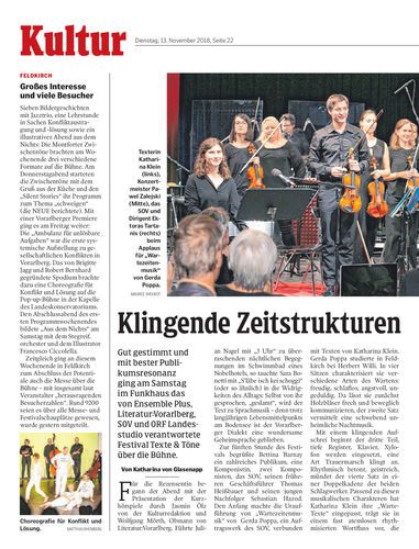 Gut gestimmt und mit bester Publikumsresonanz ging am Samstag im Funkhaus das von Ensemble Plus, Literatur:Vorarlberg, SOV und ORF Landesstudio verantwortete Festival Texte & Töne über die Bühne.