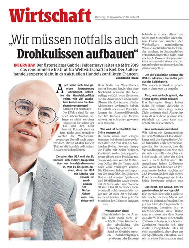 Der Österreicher Gabriel Felbermayr leitet ab März 2019 das renommierte Institut für Weltwirtschaft in Kiel. Der Außenhandelsexperte sieht in den aktuellen Handelskonflikten Chancen. Von Claudia Haase