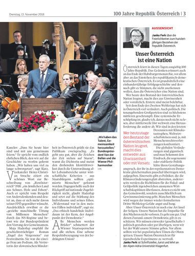 AM SCHAUPLATZ. Die Republik feierte in der Staatsoper nachdenklich ihren 100. Geburtstag mit Identitätssuche, Selbstvergewisserung und Selbstkritik. Von Thomas Götz