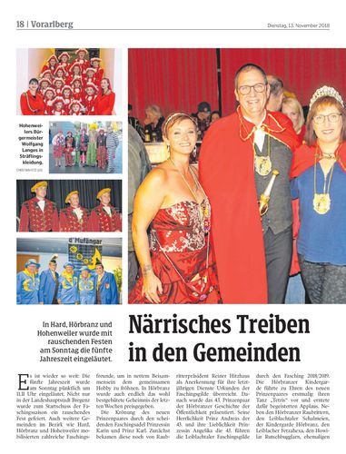 In Hard, Hörbranz und Hohenweiler wurde mit rauschenden Festen am Sonntag die fünfte Jahreszeit eingeläutet.