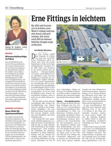 Bis 2021 soll Stammsitz in Schlins zum Werk 3 verlegt und das alte Areal verkauft werden. Elb-Form wird 2019 an Remus-Sebring-Gruppe angeschlossen.