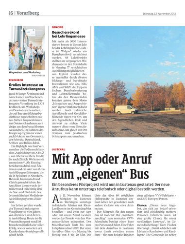 Ein besonderes Pilotprojekt wird nun in Lustenau gestartet: Der neue Anrufbus kann untertags telefonisch oder digital bestellt werden.