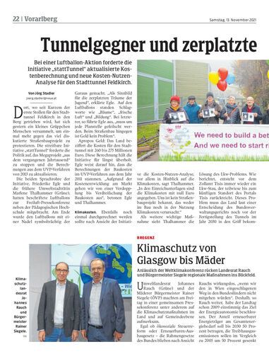 Bei einer Luftballon-Aktion forderte die Initiative „stattTunnel“ aktualisierte Kostenberechnung und neue Kosten-Nutzen-Analyse für den Stadttunnel Feldkirch.