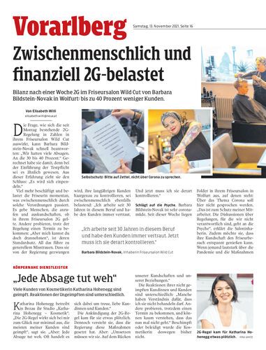 Bilanz nach einer Woche 2G im Friseursalon Wild Cut von Barbara Bildstein-Novak in Wolfurt: bis zu 40 Prozent weniger Kunden.