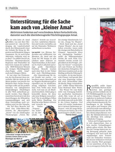 Aktivisten forderten auf verschiedene Arten Fortschritt ein, darunter auch die überlebensgroße Flüchtlingspuppe Amal.