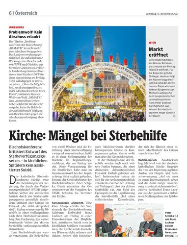 Bischofskonferenz kritisiert Entwurf des Sterbeverfügungsgesetzes – in kirchlichen Spitälern kein assistierter Suizid.