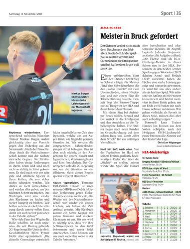 Der Oktober verlief nicht nach dem Geschmack des Meisters. Nach der Länderspielpause wollen Schmid und Co. zurück in die Erfolgsspur und bei Aufsteiger Bruck voll punkten.