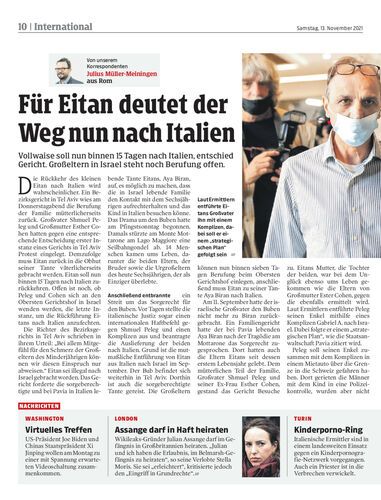 Vollwaise soll nun binnen 15 Tagen nach Italien, entschied Gericht. Großeltern in Israel steht noch Berufung offen.