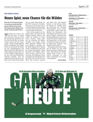 Nach der 0:5-Derbyschlappe in Lustenau wollen die Bregenzerwälder heute beim Heimspiel gegen Wipptal die Dinge wieder geraderücken.