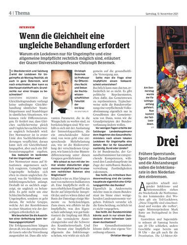Warum ein Lockdown nur für Ungeimpfte und eine allgemeine Impfpflicht rechtlich möglich sind, erläutert der Grazer Universitätsprofessor Christoph Bezemek.