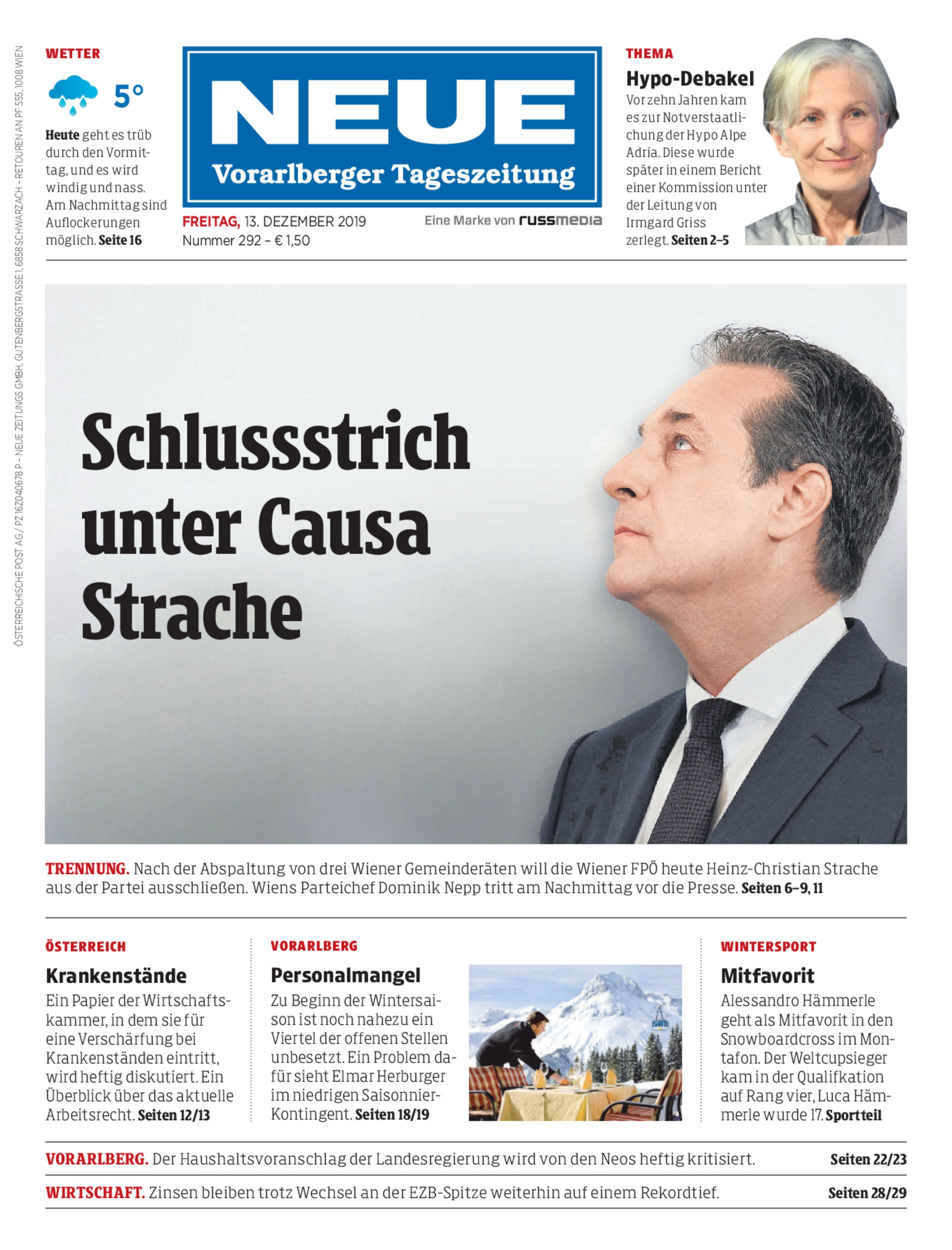 Trennung. Nach der Abspaltung von drei Wiener Gemeinderäten will die Wiener FPÖ heute Heinz-Christian Strache aus der Partei ausschließen. Wiens Parteichef Dominik Nepp tritt am Nachmittag vor die Presse. Seiten 6–9, 11