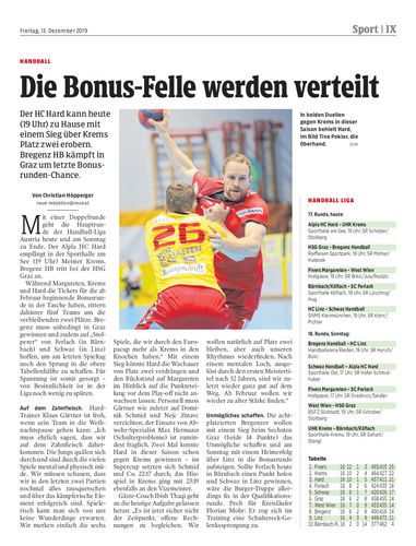 Der HC Hard kann heute (19 Uhr) zu Hause mit einem Sieg über Krems Platz zwei erobern. Bregenz HB kämpft in Graz um letzte Bonusrunden-Chance.