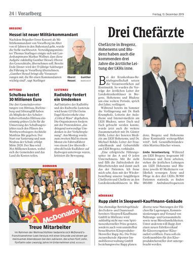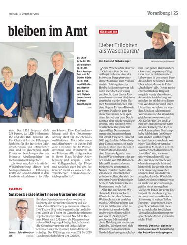 Chefärzte in Bregenz, Hohenems und Bludenz haben auch die kommenden drei Jahre die ärztliche Leitung der LKHs inne.