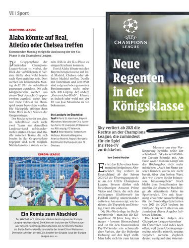 Sky verliert ab 2021 die Rechte an der Champions League, die zumindest für ein Spiel ins Free-TV zurückkehrt.