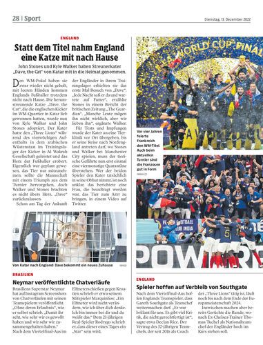 John Stones und Kyle Walker haben Streunerkater „Dave, the Cat“ von Katar mit in die Heimat genommen.