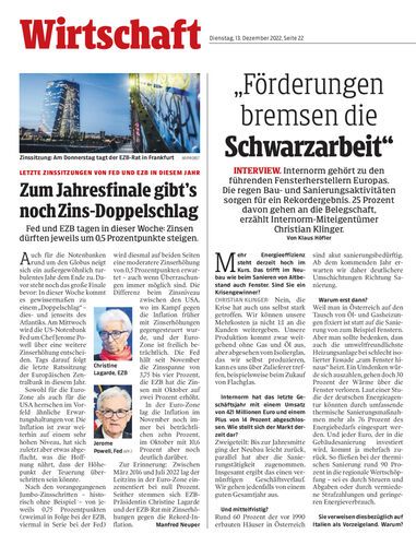 Internorm gehört zu den führenden Fensterherstellern Europas. Die regen Bau- und Sanierungsaktivitäten sorgen für ein Rekordergebnis. 25 Prozent davon gehen an die Belegschaft, erzählt Internorm-Miteigentümer Christian Klinger. Von Klaus Höfler