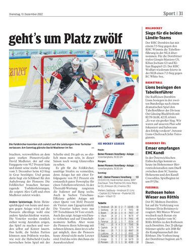 Am Sonntag überzeugten die Bemer Pioneers Vorarlberg beim 3:1-Sieg in Klagenfurt. Heute und morgen steht ein Heimspieldoppel gegen Tabellennachbar Asiago an.