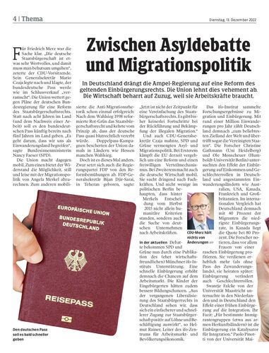 In Deutschland drängt die Ampel-Regierung auf eine Reform des geltenden Einbürgerungsrechts. Die Union lehnt dies vehement ab. Die Wirtschaft beharrt auf Zuzug, weil sie Arbeitskräfte braucht.