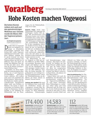 Die hohen Kosten wirken sich auch auf den gemeinnützigen Wohnbau aus. Gestern wurde die Bilanz 2021 der Vogewosi präsentiert.