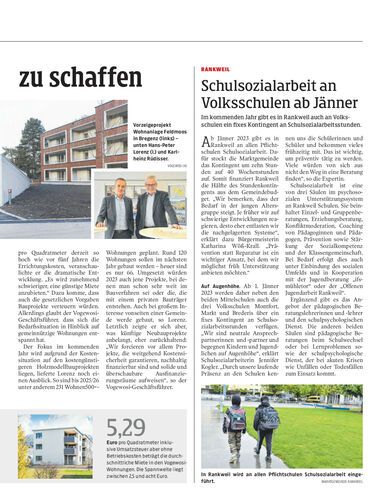 Im kommenden Jahr gibt es in Rankweil auch an Volksschulen ein fixes Kontingent an Schulsozialarbeitsstunden.