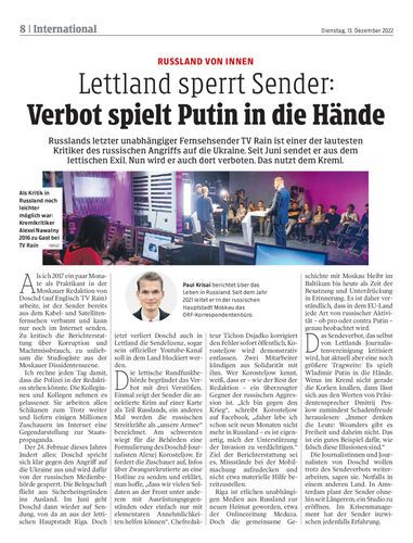 Russlands letzter unabhängiger Fernsehsender TV Rain ist einer der lautesten Kritiker des russischen Angriffs auf die Ukraine. Seit Juni sendet er aus dem lettischen Exil. Nun wird er auch dort verboten. Das nutzt dem Kreml.