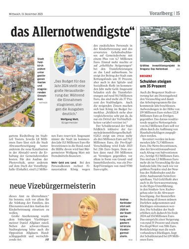 Auch die Stadt Feldkirch hat mit steigenden Kosten und stagnierenden Einnahmen zu kämpfen. Um das Bugdetloch zu stopfen, müssen Rücklagen aufgelöst und neue Schulden aufgenommen werden.