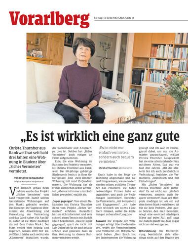 Christa Thurnher aus Rankweil hat seit bald drei Jahren eine Wohnung in Bludenz über „Sicher Vermieten“ vermietet.