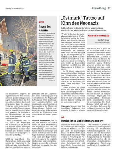 Geldstrafe und bedingte Haftstrafe wegen nationalsozialistischer Wiederbetätigung mit zwölf Verbrechen.