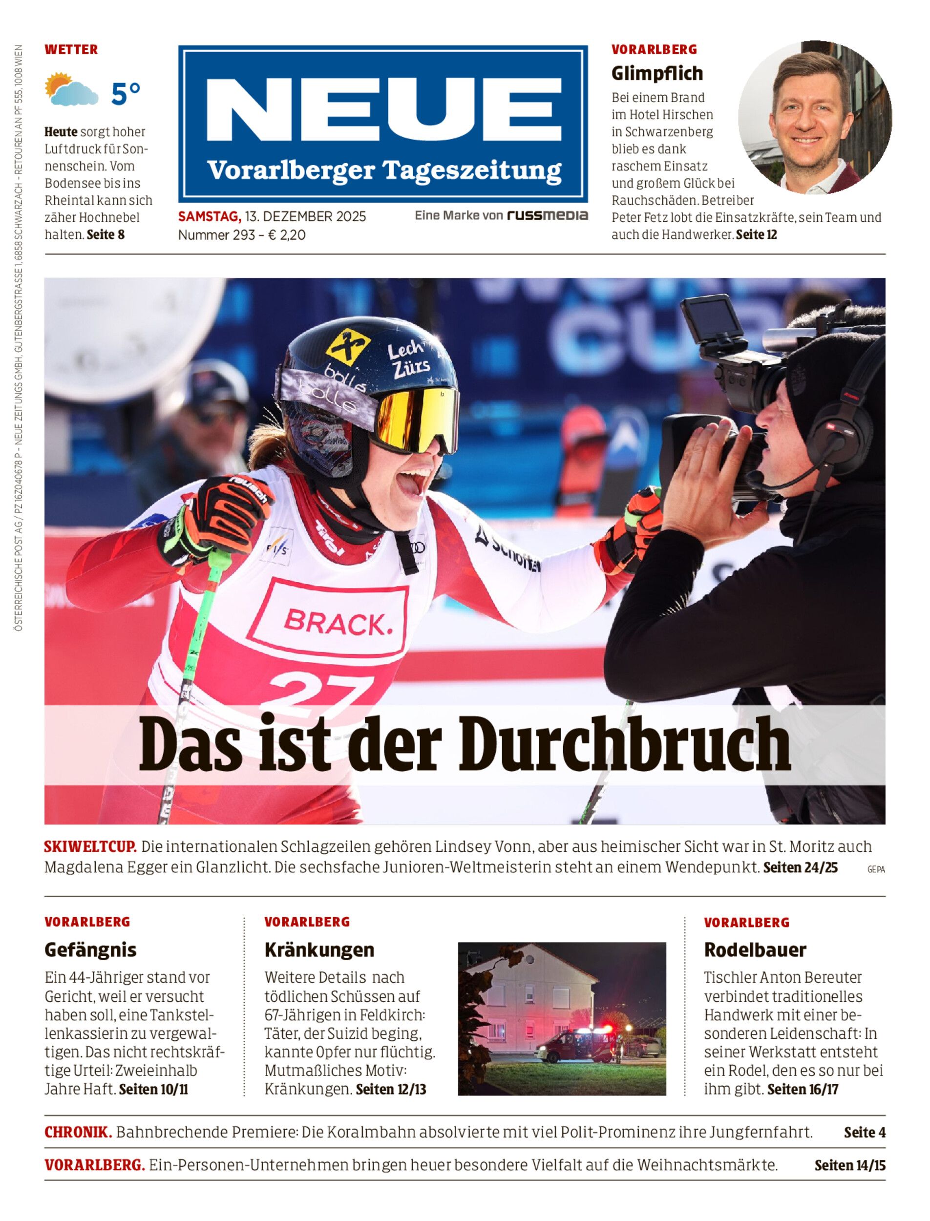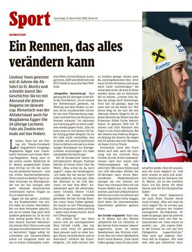 Lindsey Vonn gewinnt mit 41 Jahren die Abfahrt in St. Moritz und schreibt damit Ski-Geschichte: Sie ist mit Abstand die älteste Siegerin im Skiweltcup. Historisch war der Abfahrtslauf auch für Magdalena Egger: Die 24-jährige Lecherin fuhr als Zweite erstmals auf das Podest.