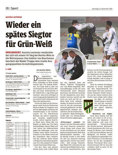 Spielbericht. Austria Lustenau verabschiedet sich mit einem 1:0-Sieg bei Hertha Wels in die Winterpause. Das Goldtor von Bouchenna beschert der Mader-Truppe eine starke Ausgangsposition im Aufstiegsrennen.