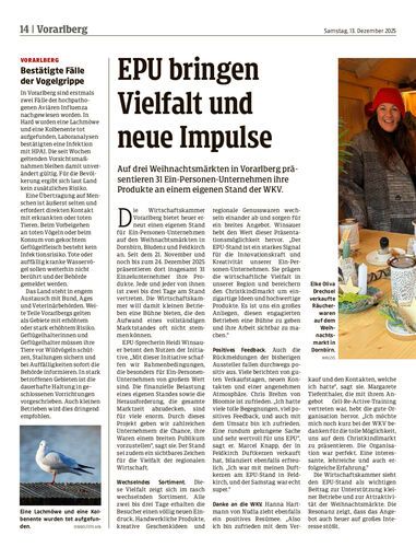 Auf drei Weihnachtsmärkten in Vorarlberg präsentieren 31 Ein-Personen-Unternehmen ihre Produkte an einem eigenen Stand der WKV.