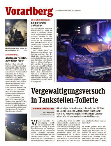 44-jähriger versuchte nach Ansicht der Richter im Bezirk Bludenz Mitarbeiterin einer Tankstelle zu vergewaltigen. Mehrjährige Gefängnisstrafe für unbescholtenen Weißrussen.