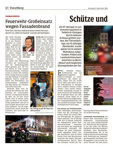 Peter Fetz, Chef des traditionsreichen Hotels Hirschen, spricht von „Glück im Unglück“ und lobt alle Beteiligten.